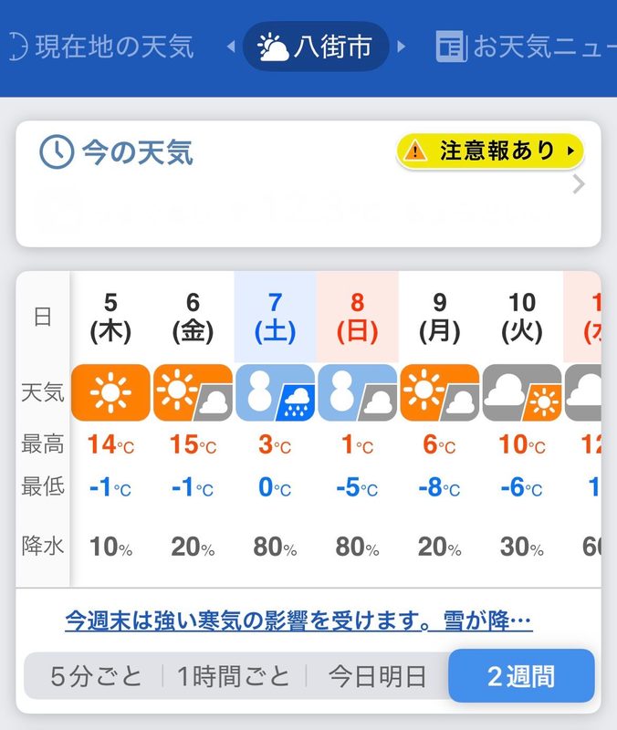 週末の天候☃️(積雪)が心配です😓