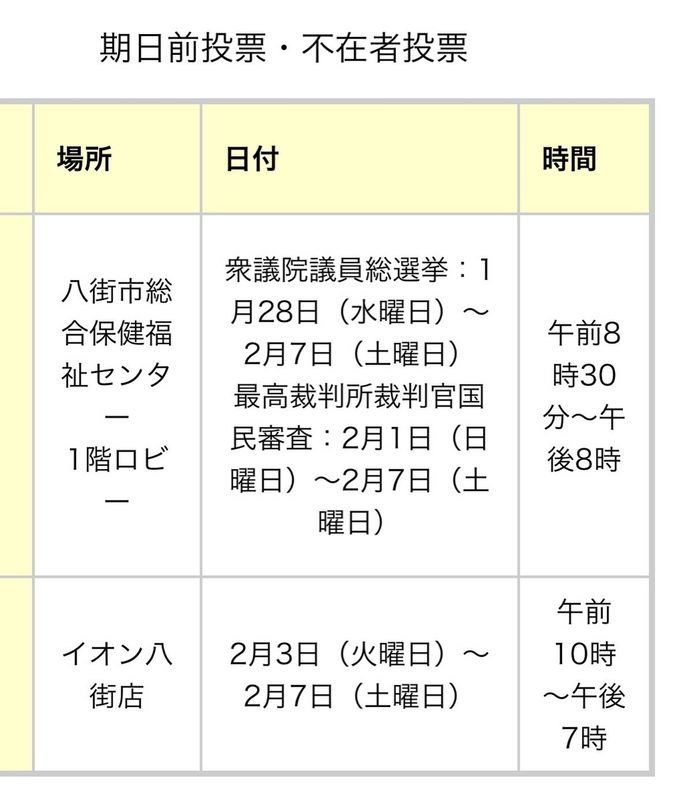 期日前投票(八街市)をご利用ください