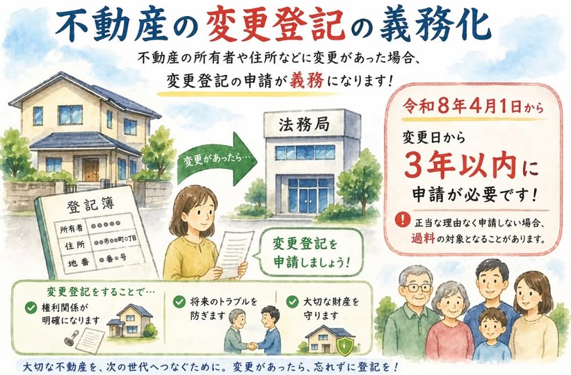 4/21 相続登記の義務化(2024年4月施行)に続き、不動産の所有者が住所や氏名を変更した際の「変更登記」も義務化されました。