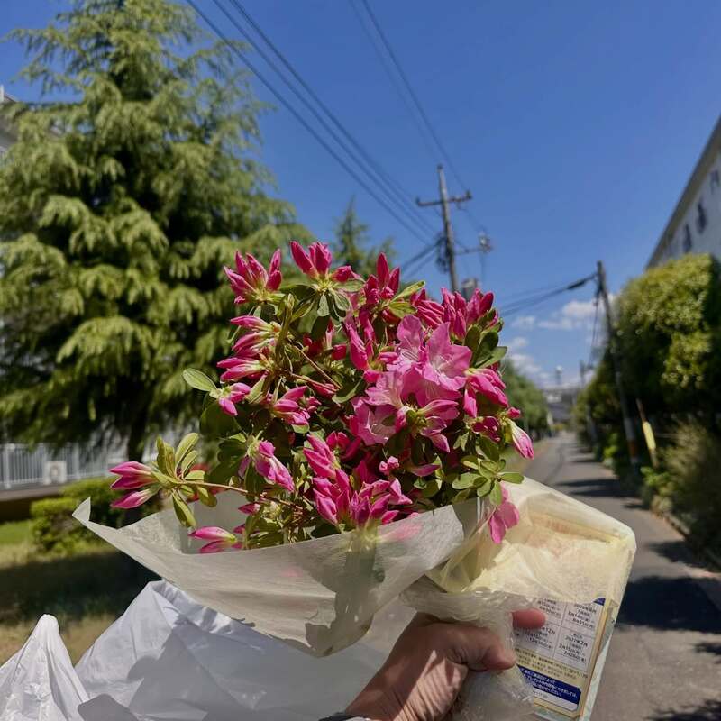 すると、その間にクライアントが外のツツジの花を摘んだのか、手作りの花束を準備して待っていてくださいました🌺