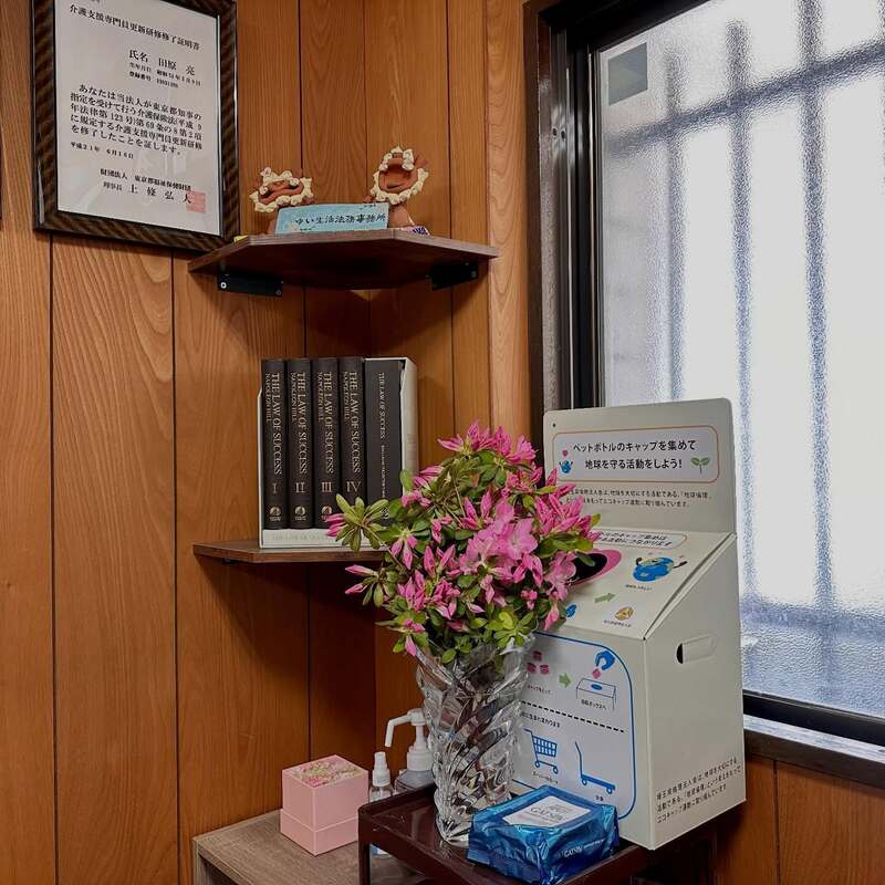 事務所に戻ると、花瓶を探して狭小事務所に飾りました。なかなか良い感じ^^