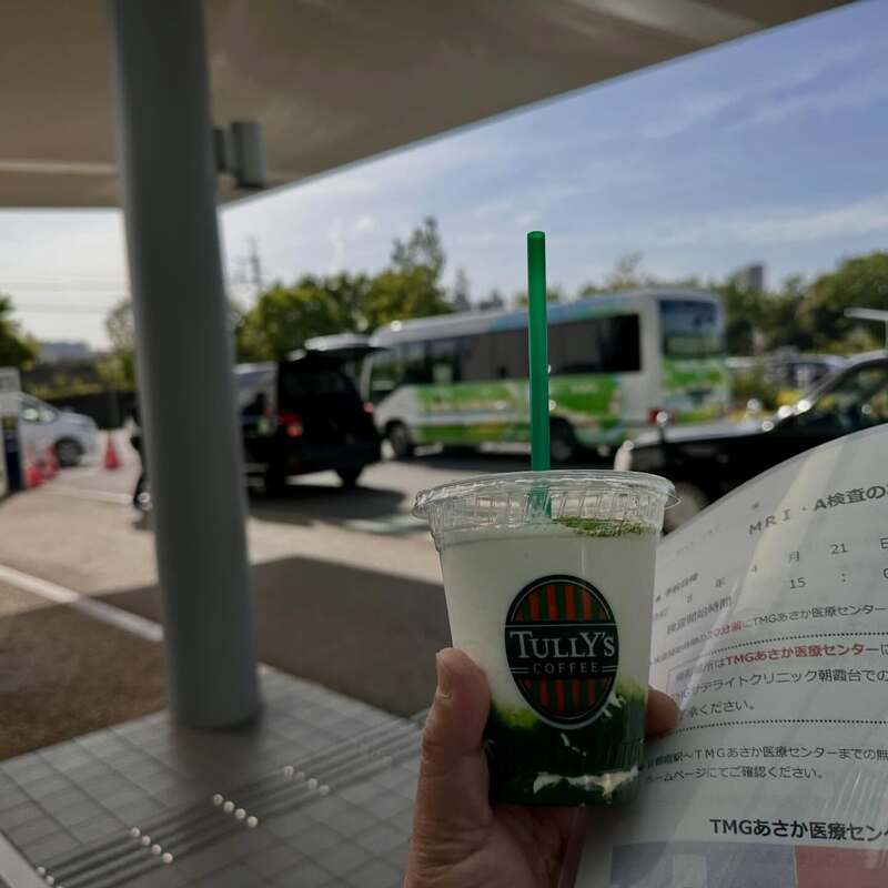 そして締めのMRIですが、20分くらいかかりますって説明でしたけど、仰向けになって頭を固定して、スタートしたら爆睡したのか一瞬で終了。頑張ったご褒美に抹茶ティラミスシェイク😆