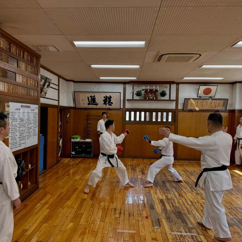 痛飲して重い身体を朝から虐めた昨日。来週に空手大会があるそうで、軽く身体をほぐした後は早々に組手と形に分かれての稽古でした。
