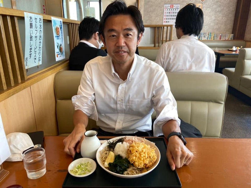 〇飲食店応援、朝霞市の「更科」さんで冷やしかき揚げそば。大きなかき揚げで食べ応えがあります。