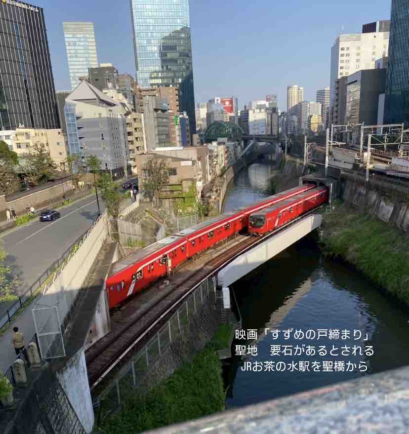 作中に描かれる御茶ノ水駅周辺、聖橋の風景。