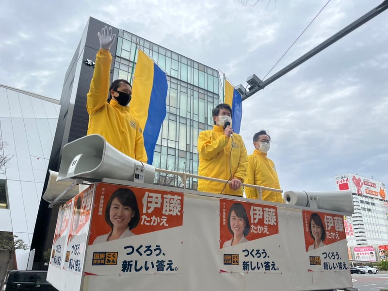 名古屋市中区 栄交差点にて、小川俊之名古屋市会議員、富田昭雄愛知県議会議員、古川元久愛知県連代表や大塚耕平参議院議員をはじめ国民民主党愛知県連の仲間たちと共にウクライナへの連帯を呼びかけました。沢山の方々に足を止めて募金頂き、感謝致します😌