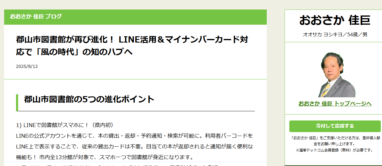 ホーム>政党・政治家>おおさか 佳巨 (オオサカ ヨシキヨ)>本を借りるだけじゃない!郡山中央図書館を“サードプレイス”に