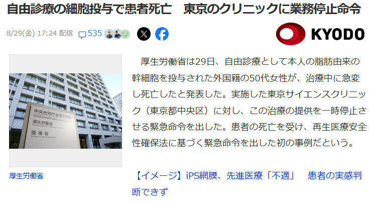 このニュースは、再生医療の可能性とリスクを改めて浮き彫りにしました。