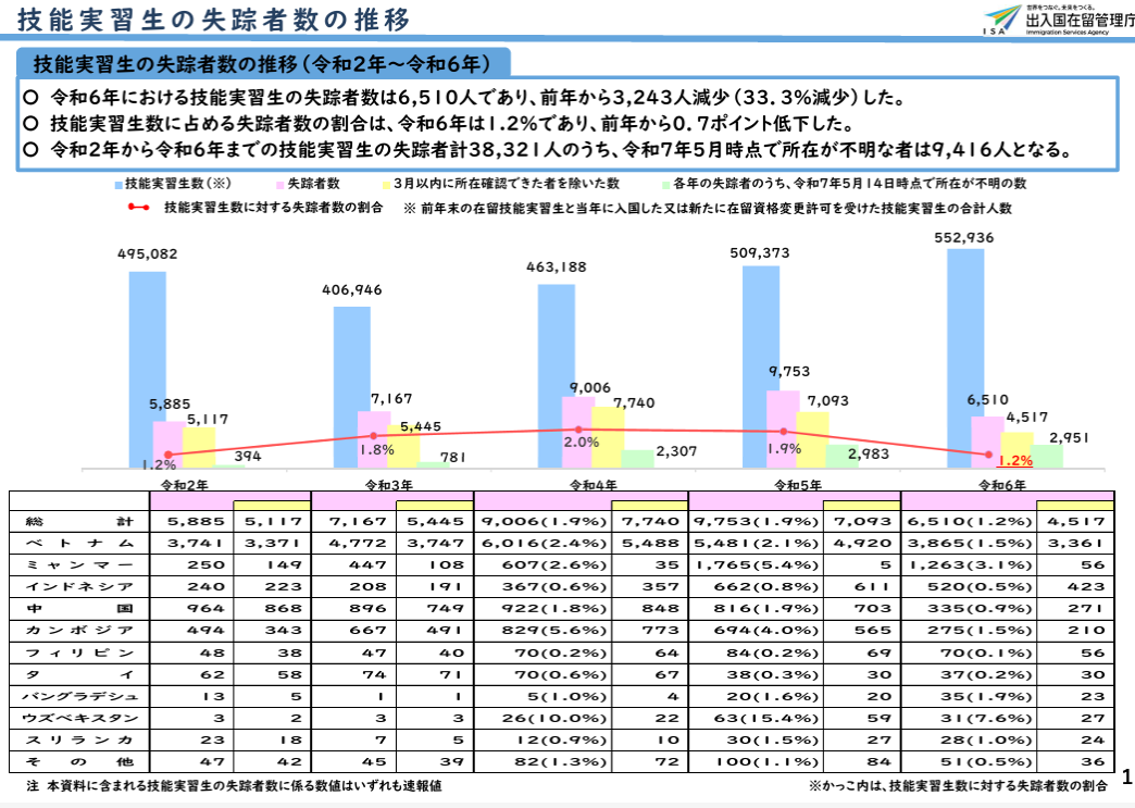 行方不明問題:年間約1万人の外国人(技能実習生中心)が行方不明で、未報告ケースを含めると実数はさらに多い可能性。福島県でも数百件が報告され、不法滞在や治安悪化への懸念が強い。