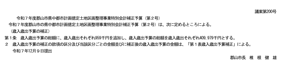 令和7年度 県中都市計画徳定土地区画整理事業特別会計補正予算(第2号)は、その流れの延長線上にあります。