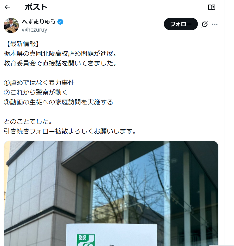 ホーム>政党・政治家>おおさか 佳巨 (オオサカ ヨシキヨ)>真岡北陵高校をめぐるSNS拡散問題及びXでの意見