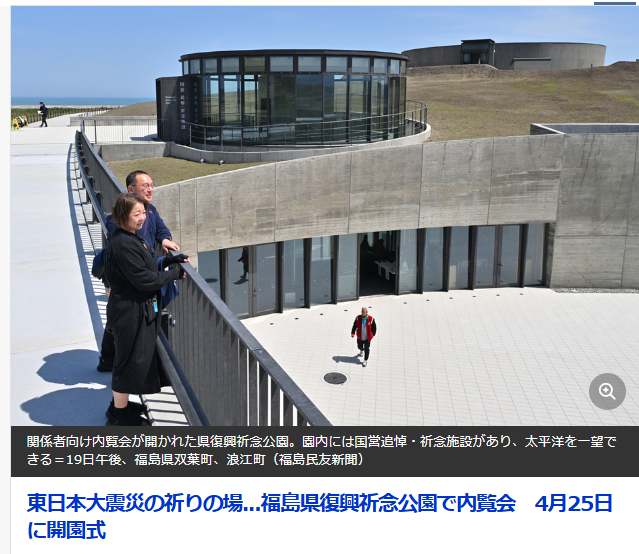 このたび、福島県の双葉、浪江両町にまたがる沿岸部に整備された県復興祈念公園が25日に開園するとのこと。