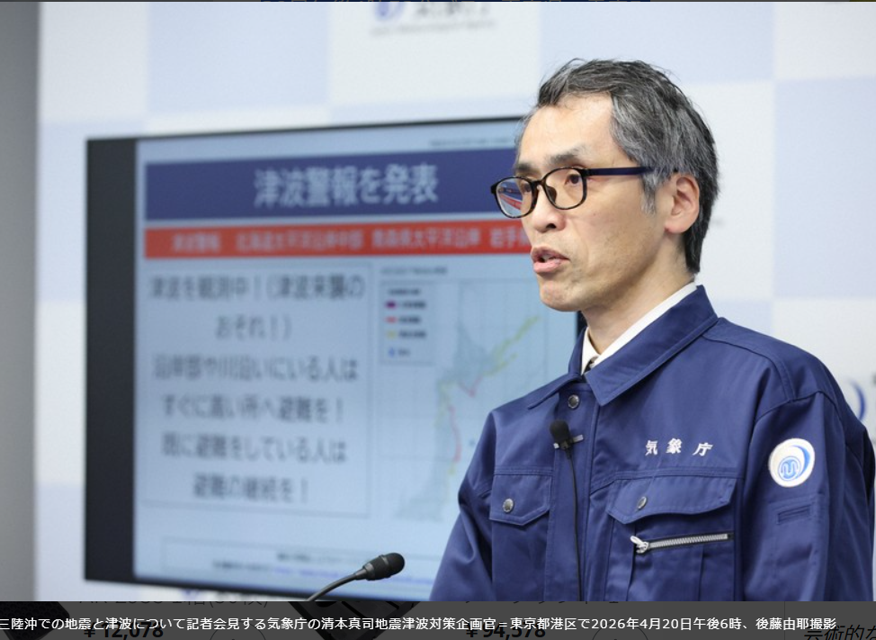 本日4月20日午後4時52分ごろ、三陸沖を震源とするマグニチュード7.7の地震が発生しました。青森県で最大震度5強を観測し、福島県内でも揺れが確認されています。