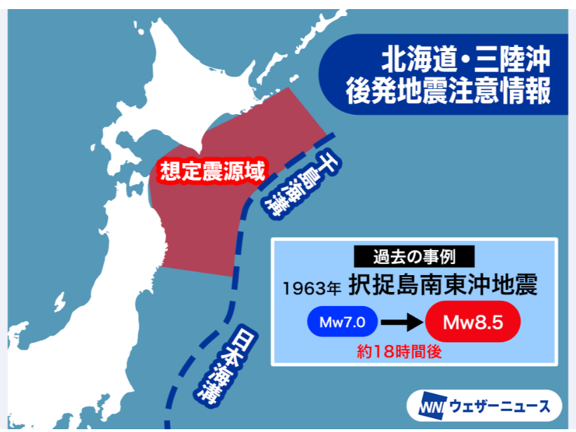 実際にこの情報が出るのは、2025年12月の青森県東方沖の地震以来、今回で2回目です。
