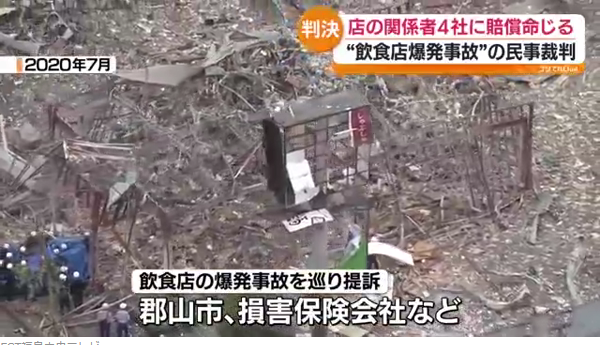 福島地裁郡山支部で行われた判決公判で裁判所は、店の運営会社と、事故当時に店内を工事していた会社、ガスの供給会社、そしてガスの保安会社の計4社に責任があると認め、総額でおよそ5500万円の支払いを命じる判決を言い渡しました。