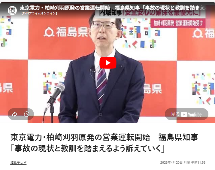 これに対し、内堀雅雄福島県知事は、「事故の教訓を踏まえ、安全安心を最優先に」と述べました。