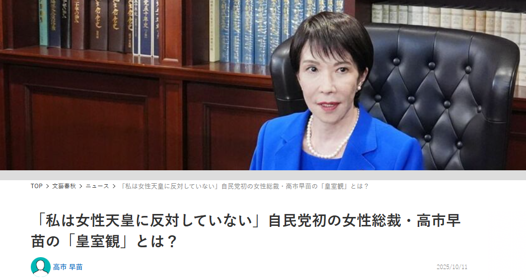 そんな中、高市早苗首相の発言が波紋を広げています。首相はこれまで「女性天皇を容認する」姿勢を明確に示した発言を複数回行っていました。特に、2021年12月の文藝春秋インタビューでは次のように述べています。