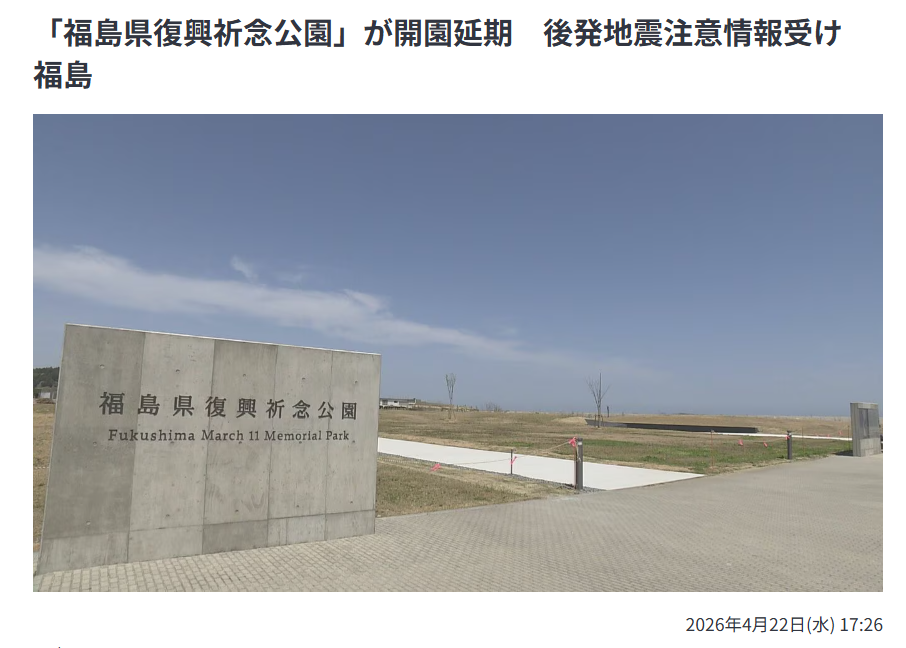 復興祈念公園の開園という「節目」に合わせるかのように、