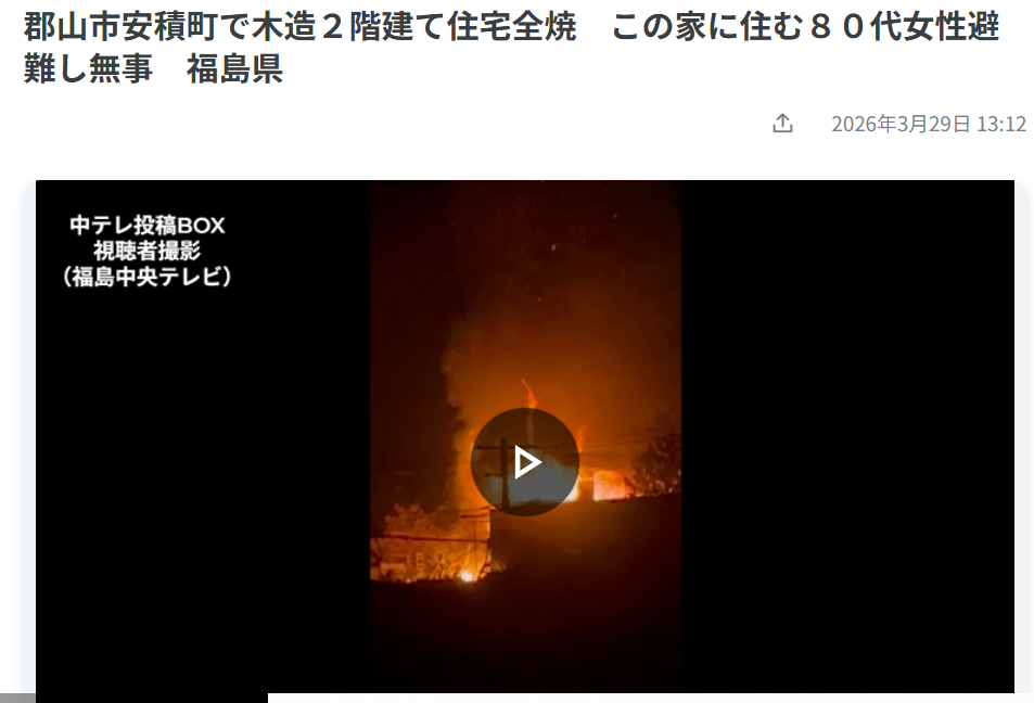 まず象徴的なのが、安積町で発生した住宅火災です。