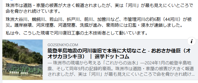 ホーム>政党・政治家>おおさか 佳巨 (オオサカ ヨシキヨ)>【珠洲市復興の今】チョコバナナさんが語る、浦秀一議員への熱い思いと「住まい」が決める珠洲の未来