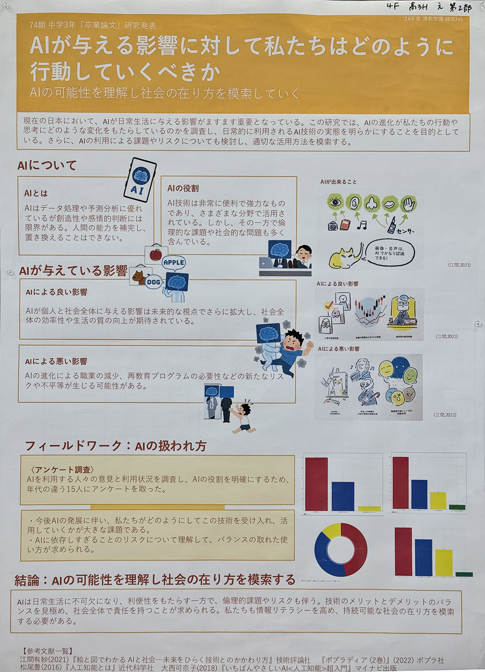 このような探究型学習を通じて、「自ら問いを立て、考え、発信する力」が養われることは、これからの時代において非常に重要です。特に、「問いの質が、学びの質を決める」という考えのもと、主体的に課題に向き合い、深い学びを得ている生徒の皆さんの姿勢は、未来の社会を支える力となるでしょう。