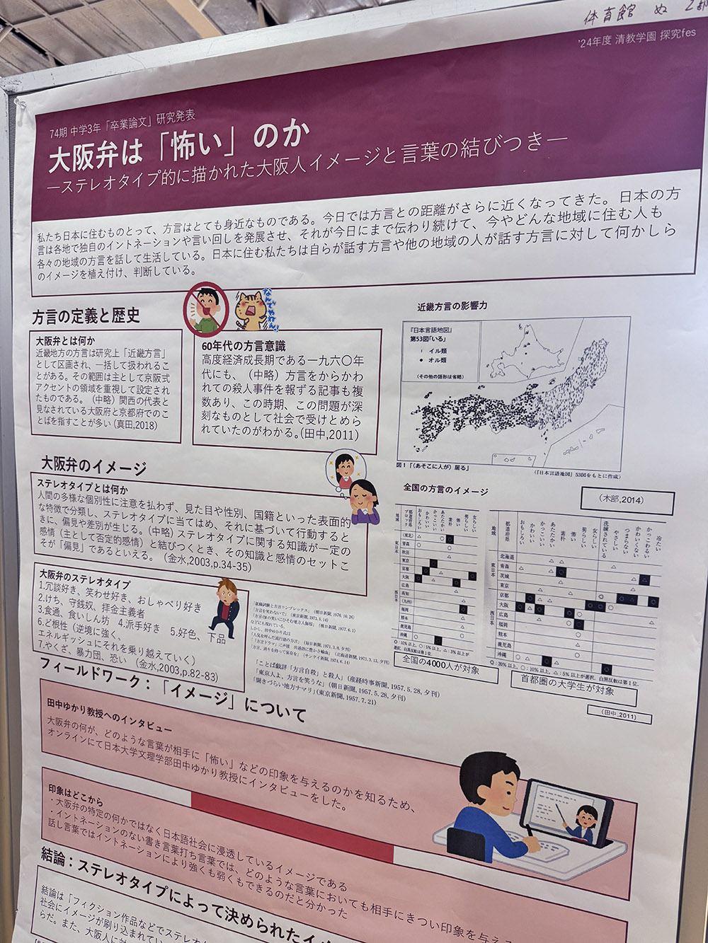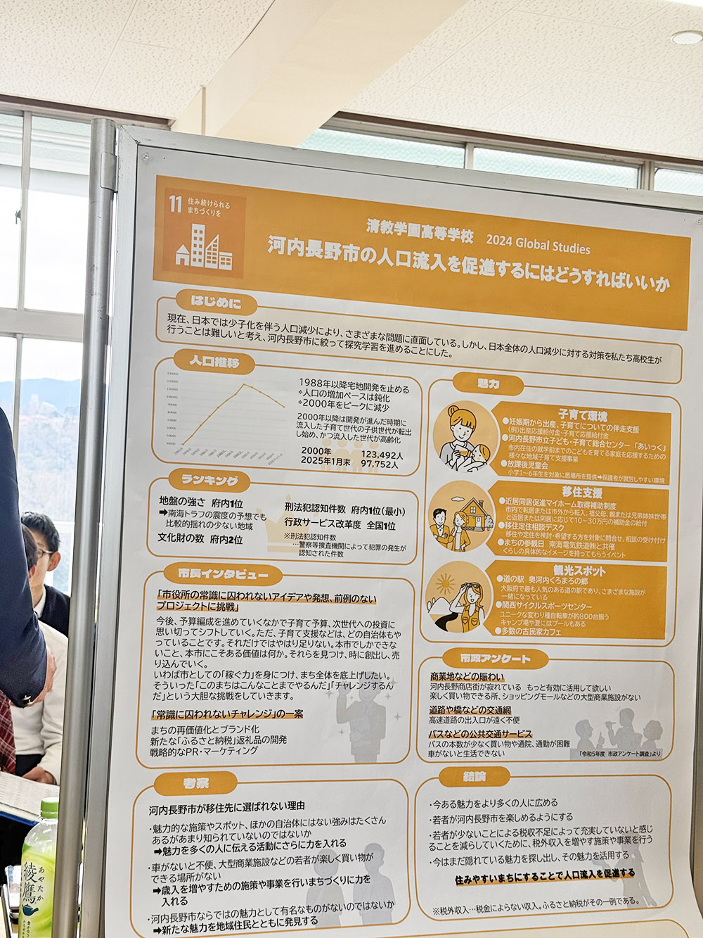 本日は、清教学園中・高等学校で開催された「探究Fes」にお伺いし、生徒の皆さんによる探究学習の成果発表を拝見しました。