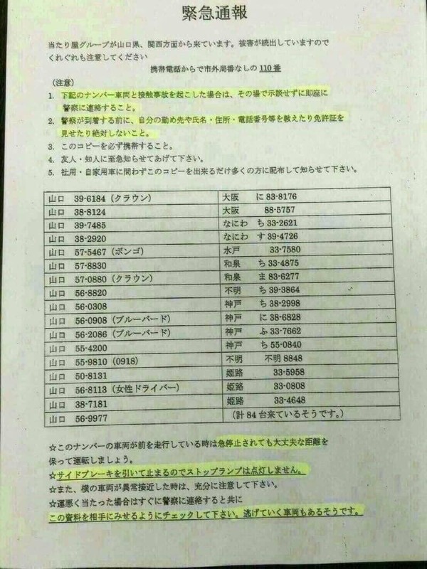 定期的にLINEで拡散されてくる当たり屋グループのデマ情報。