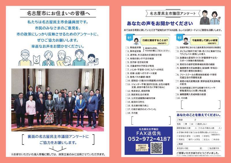 https://docs.google.com/forms/d/e/1FAIpQLSfil1c6f3v86WWOwgwR5N-OCIHd3vBdW06CKqhocW-ux9jABw/viewform #名古屋民主 #名古屋民主市会議員団 #市政アンケート #市民の声を政策に #ご協力お願い致します