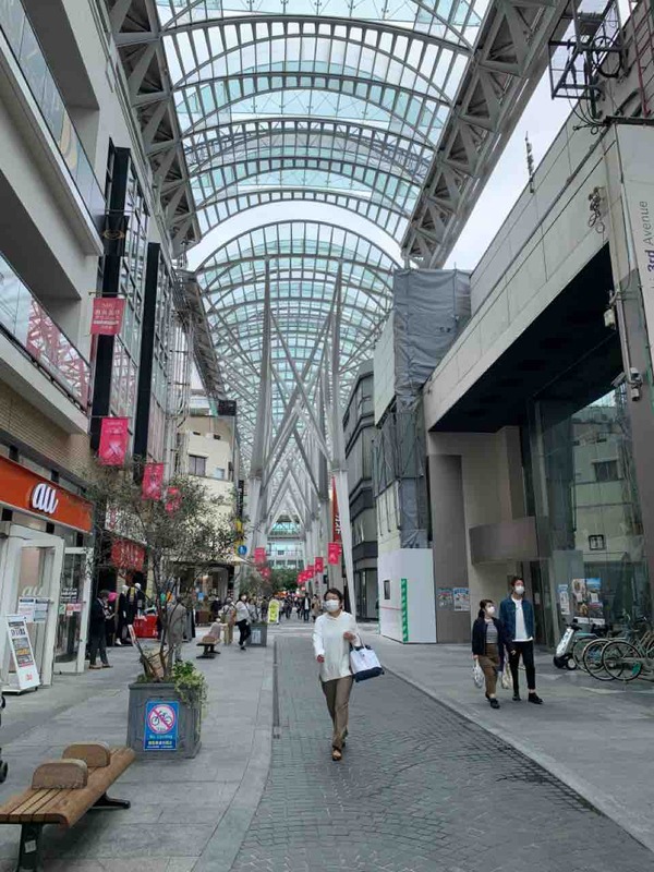 (明るいアーケードの隙間からマンションが見えているのがわかりますか)