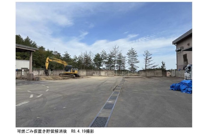 焼却炉の不具合により一時的に仮置きが発生していましたが、関係機関の協力のもと処理が進められ、4月14日に仮置き分の処理を完了しています。