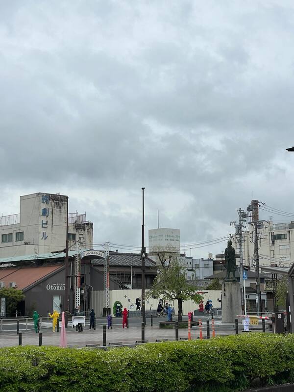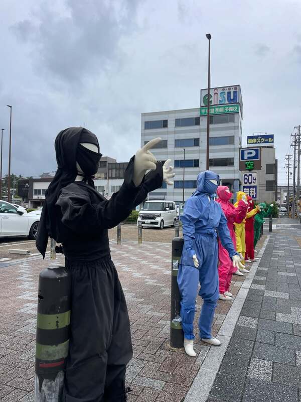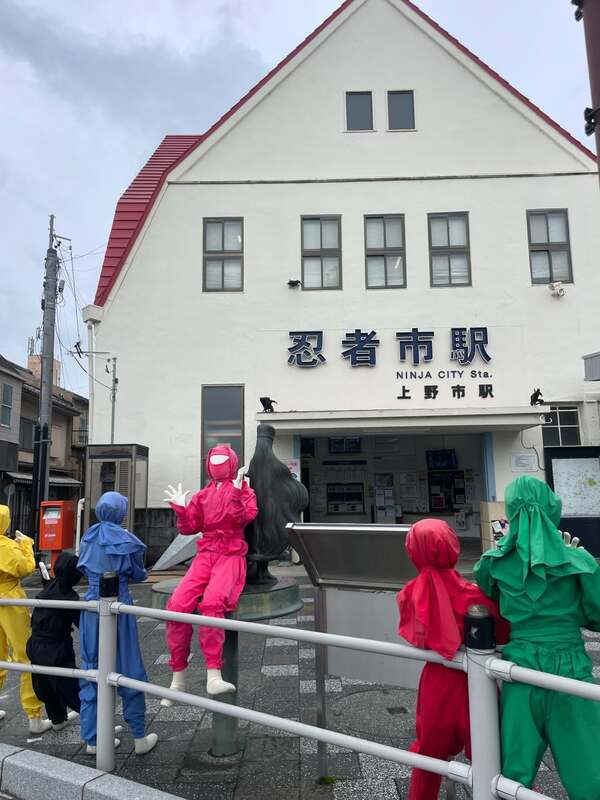 忍者市駅前も忍者たちがお出迎え。