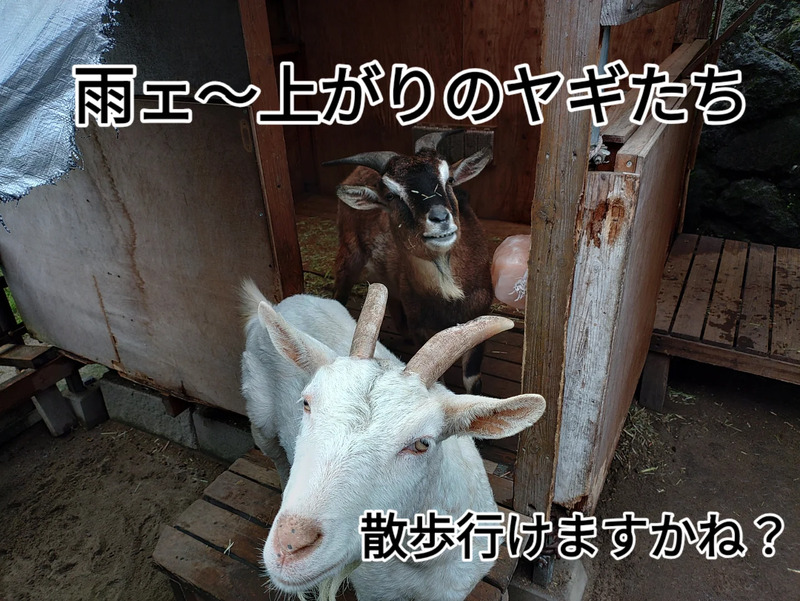 雨が降ると散歩に行けないヤギたちはヤギ小屋で暴れてますが😅。