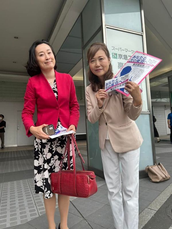 品川駅高輪口 #兵藤ゆうこ 区議と。 #田島まいこ 参議院議員が通り掛かり、激励もらいました。