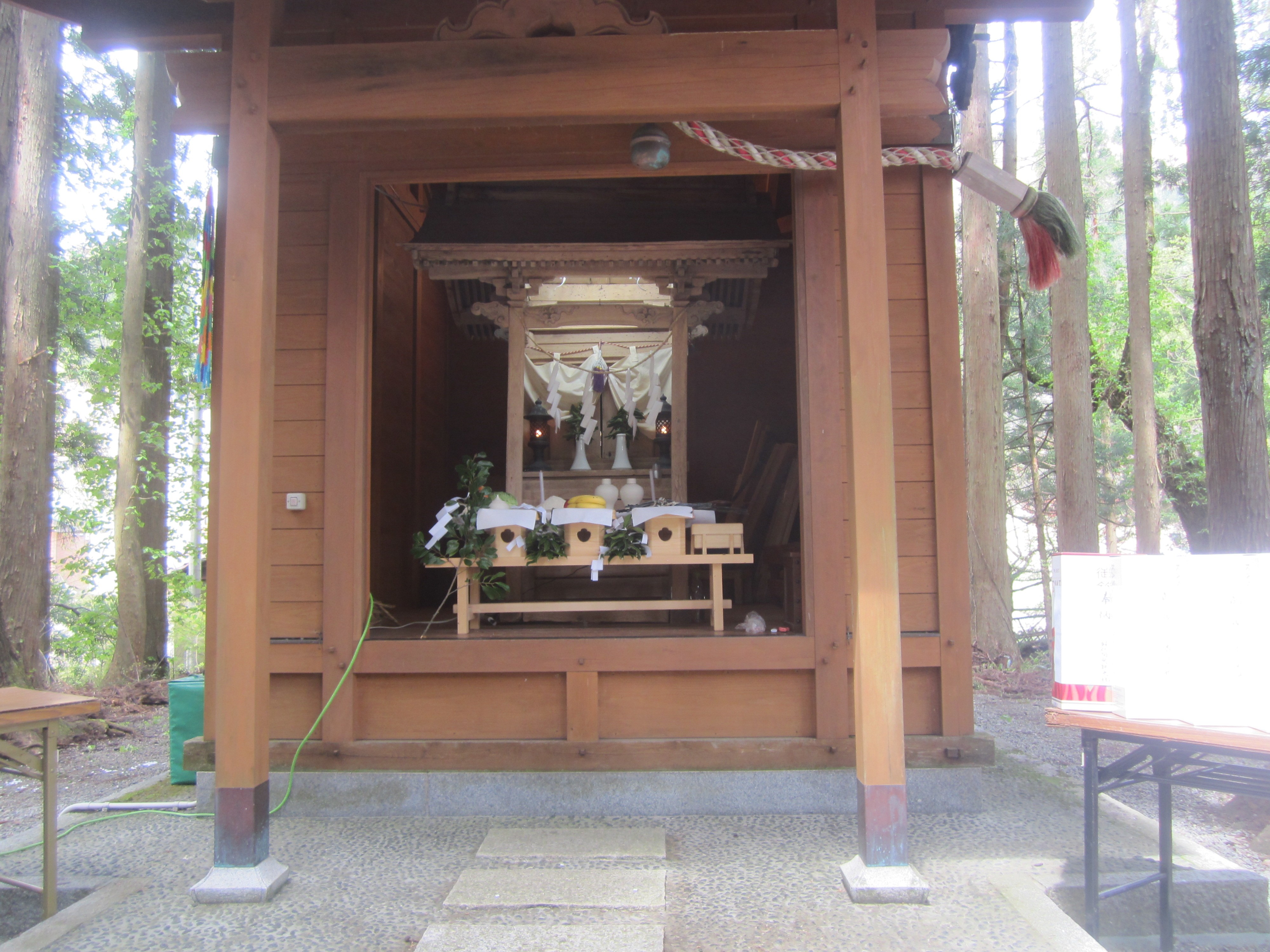 好天にまぐまれ、夏山シーズンの安全を祈願して玉串を奉てんいたしました。 大山祇神社の社の写真です。