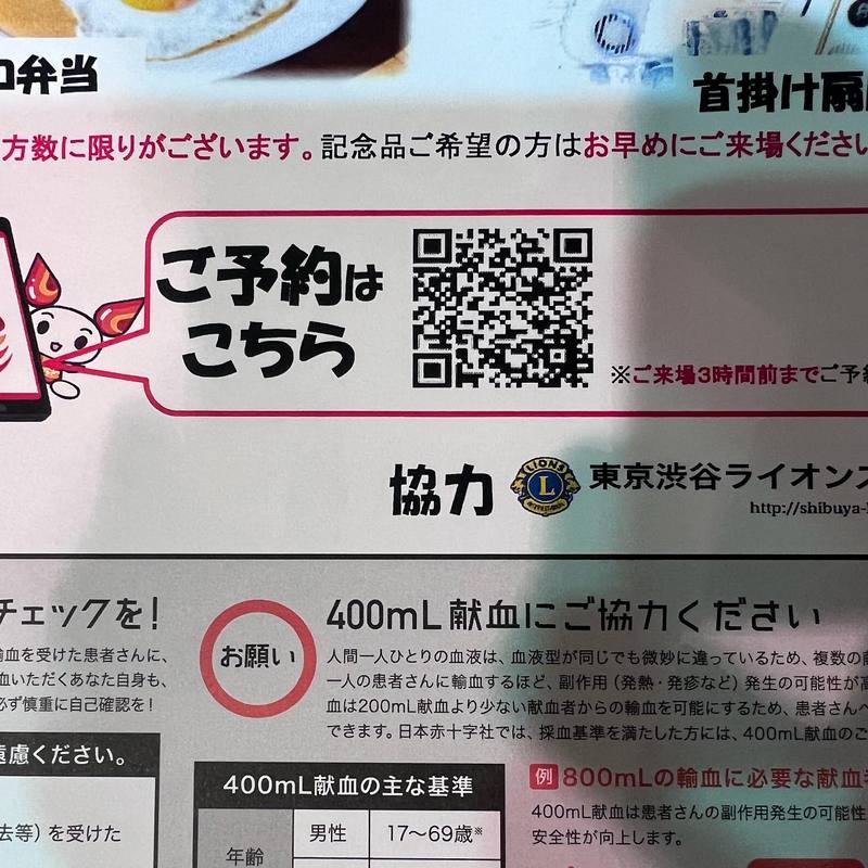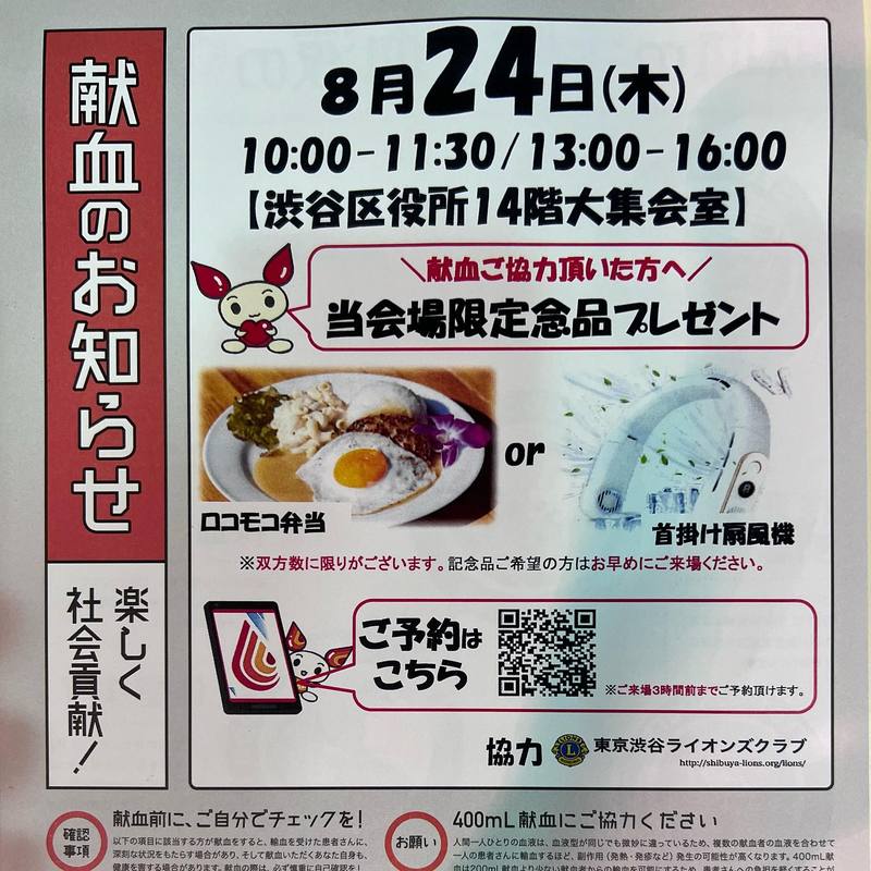 8月24日(木)は献血に🩸@渋谷区役所