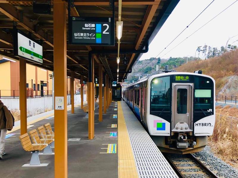 東松島市ではあおい地区と野蒜ケ丘集団移転地の2地区、それを繋ぐ「特殊区間」として、聖火がJR仙石線(野蒜〜東矢本間)で運ばれます。