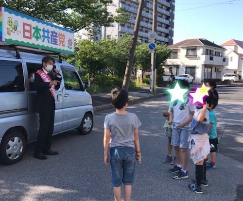 映像無く画像だけなので実は子供たちに「腐れ共産党やかましい!」と罵倒されてるかもしれない