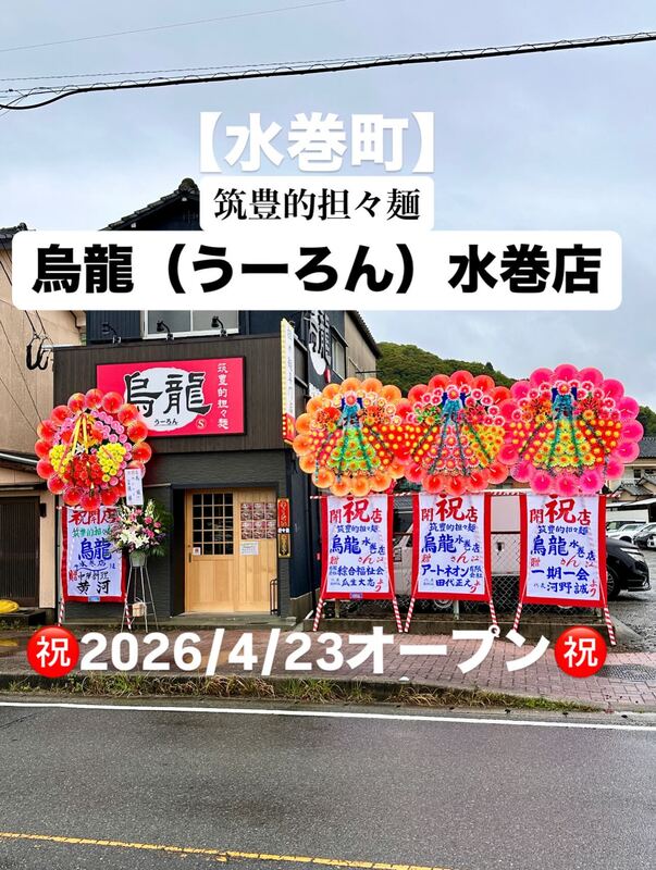 ホーム>政党・政治家>柴田 こうじ (シバタ コウジ)>🌈【水巻町】筑豊的担々麺烏龍(うーろん)水巻店㊗️2026(令和8)年4月23日オープン㊗️🍜...
