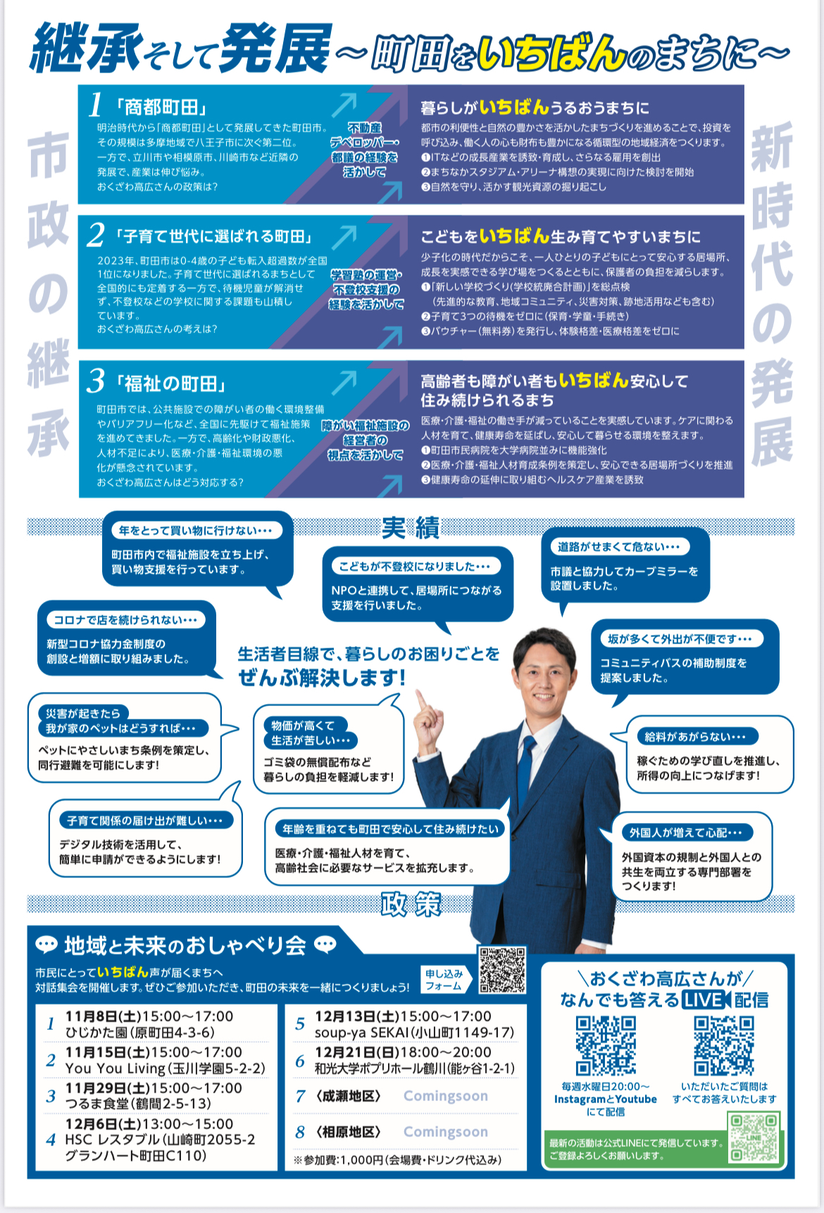 町田を"いちばん"のまちにする100の政策を市民参加でつくっていこうと思いますので、気軽な気持ちでお越しください!なお、相原地区と高ヶ坂・成瀬地区の日程も決まりました。