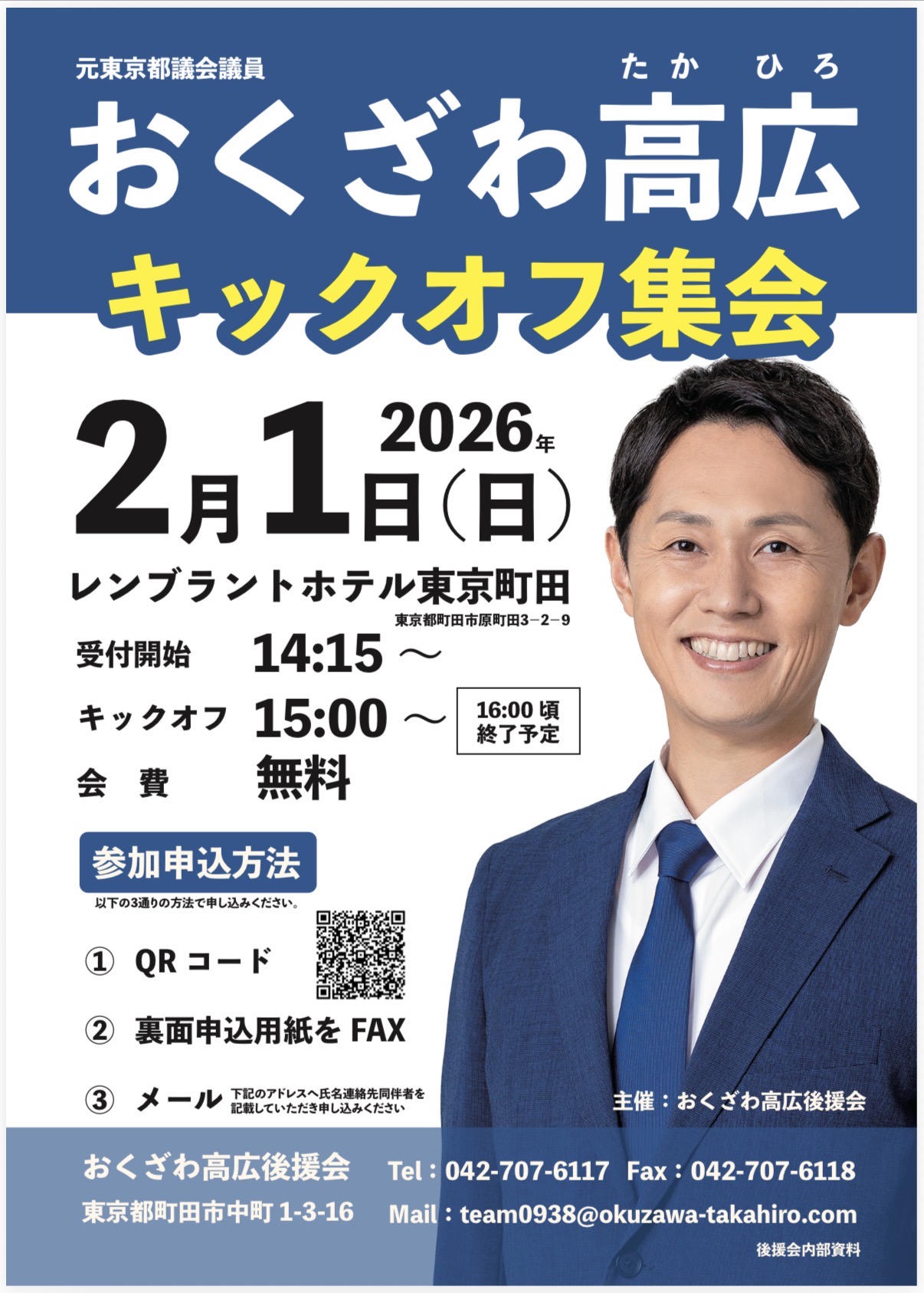 ホーム>政党・政治家>おくざわ 高広 (オクザワ タカヒロ)>2/1キックオフ集会のお知らせ_残り40日