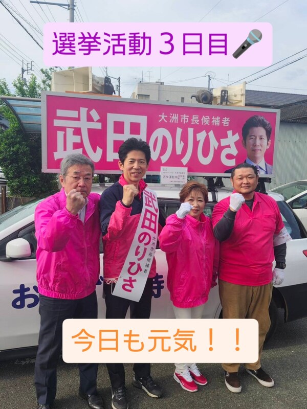 ホーム>政党・政治家>武田 のりひさ (タケダ ノリヒサ)>おはようございます☀選挙活動3日目🎤今日は、黄砂がすごいらしいです😵💦皆様も、アレルギーなどお...