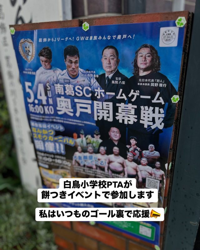 来たる5/4にはサッカーチームの南葛SCのホーム戦のときに、