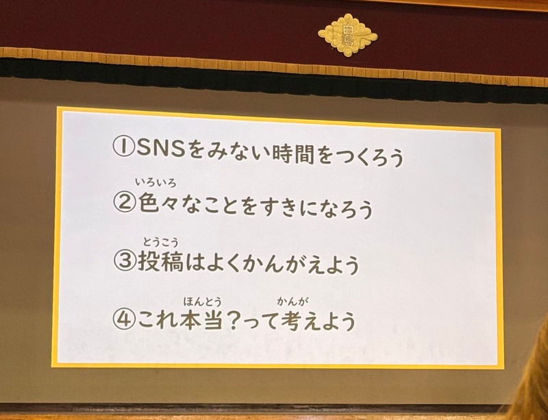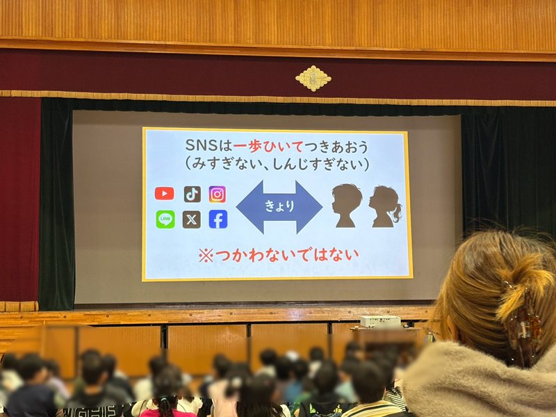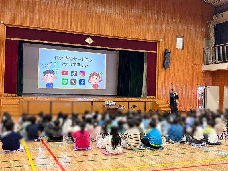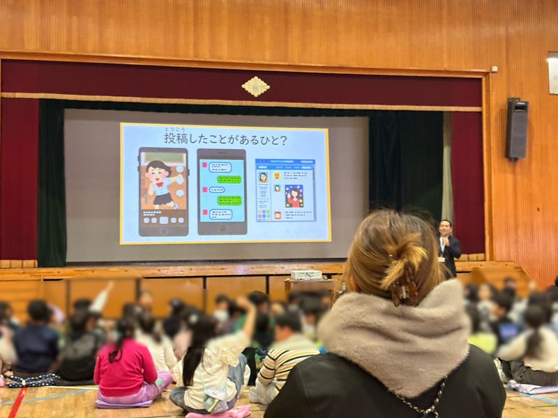 低学年・中学年・高学年の2学年ずつが体育館に集まり、インターネットやSNSの実態について学ぶ貴重な機会となりました。