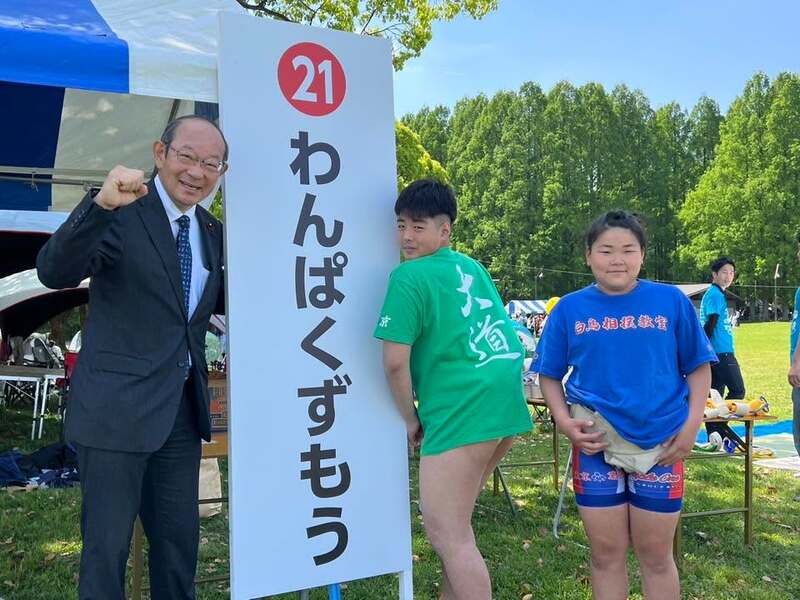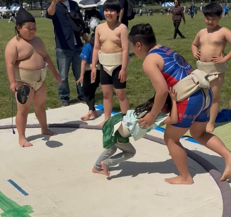 地元の白鳥相撲教室のブースでは、子どもたちの相撲体験が行われていました。
