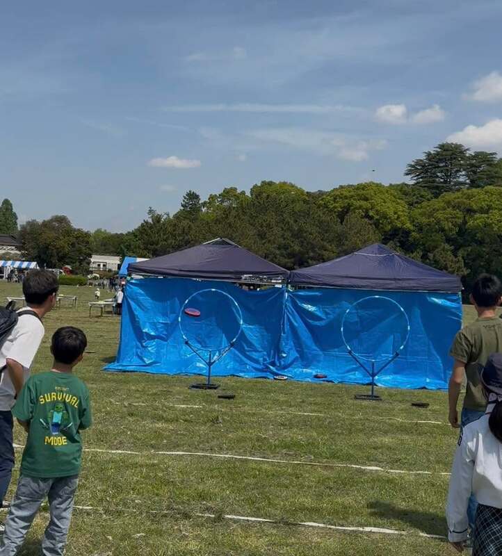 巨大迷路やパチンコ、輪投げ、ストラックアウトといったゲームに加え、凧上げやフリスビーづくりなどの工作体験、さらには消防体験まで、多彩な内容で子どもたちの好奇心を引きつけていました。