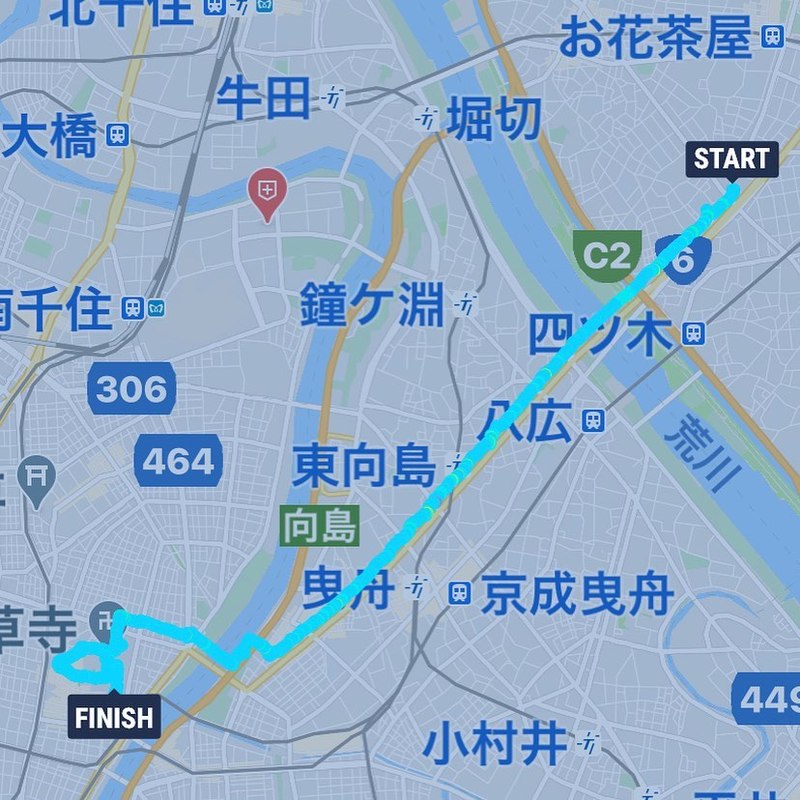 白鳥から浅草まで7km少し。