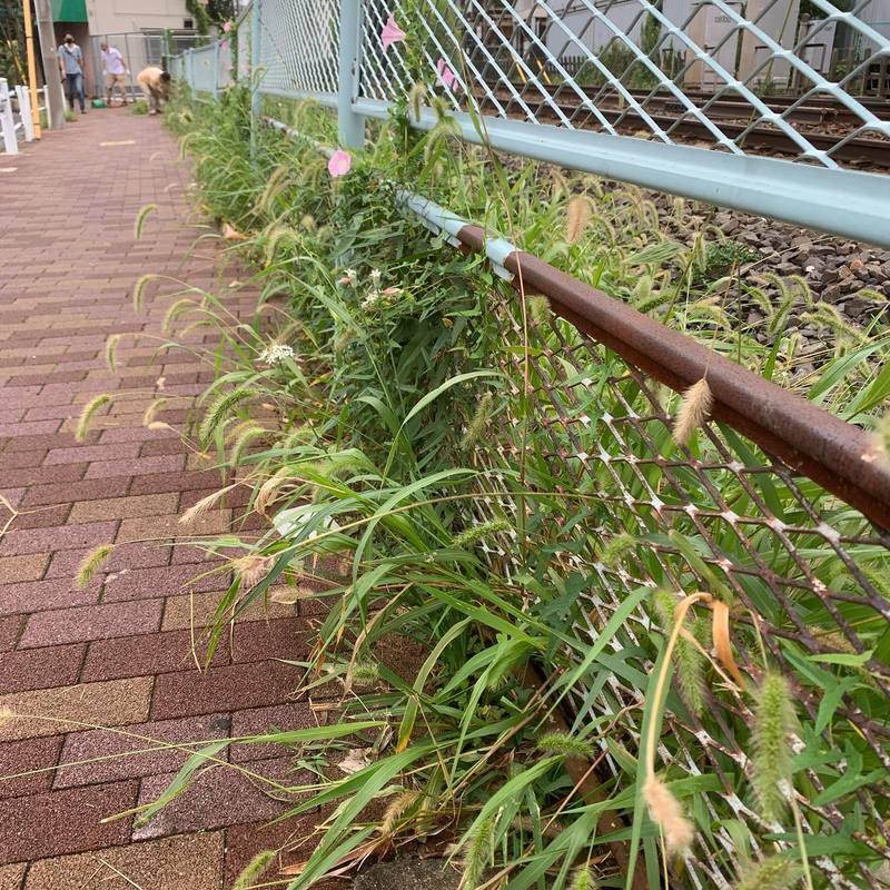 8月はこの活動がなかったため、京成線沿いの歩道の雑草が茂り放題となっていました。