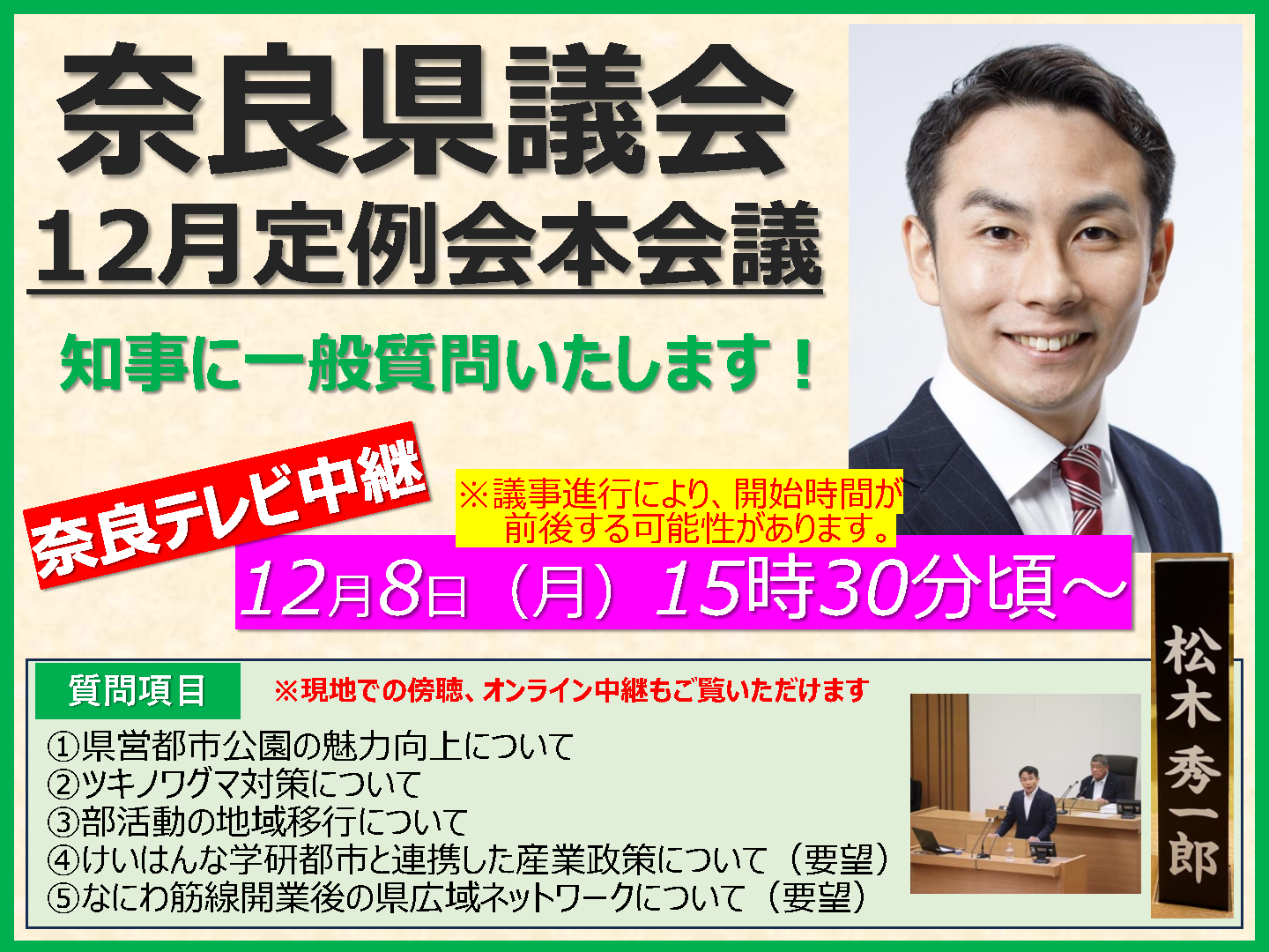 ホーム>政党・政治家>まつき 秀一郎 (マツキ シュウイチロウ)>【奈良県議会(本会議 一般質問)での質問内容】・まつき秀一郎のブログ