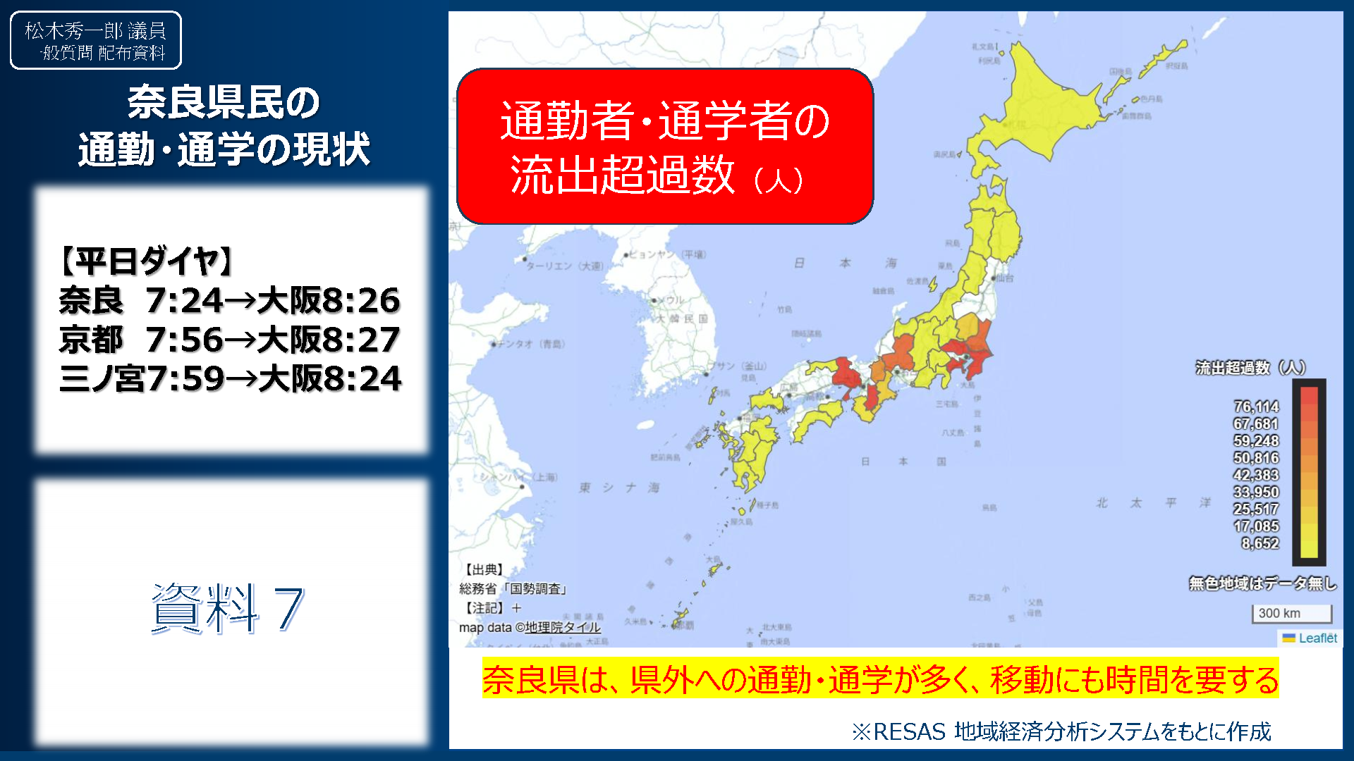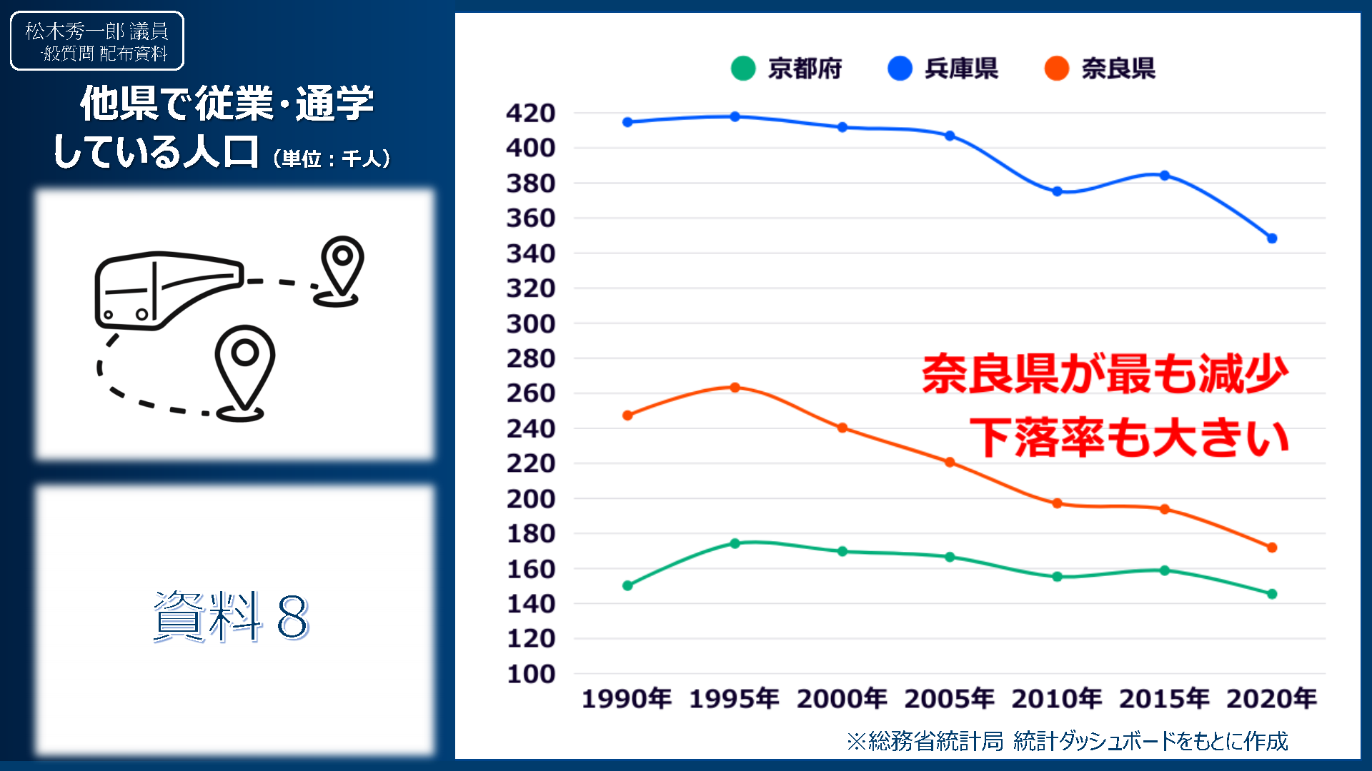 投影資料7の通り、奈良県は全国有数の「県外通勤・通学県」です。