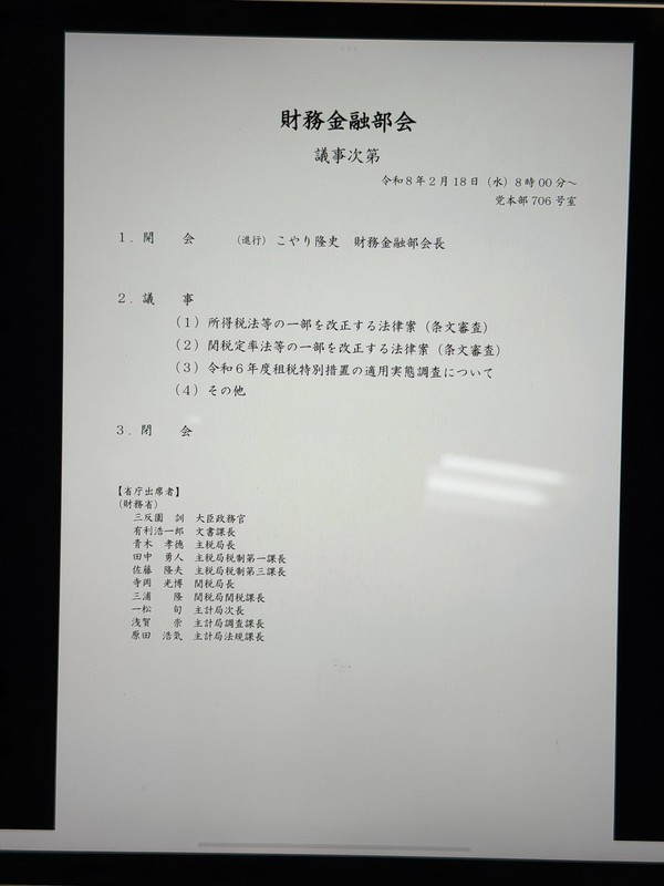 朝イチの財務金融部会出席後、国会対策委員会正副委員長打ち合わせ会陪席。